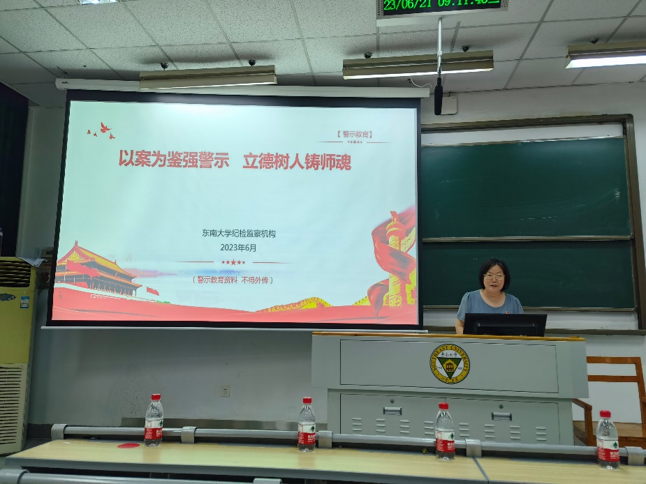 吴娟首先对学校纪检监察机构的改革进行了简要介绍,随后阐释了新时代国家和学校对师德师风的要求,最后以公开曝光的违反教师职业行为十项准则典型案例和本校查处的严重师德违规问题为反面教材,分类介绍师德违规问题和处理结果,提升教师的规则意识,引导全体教师以案为鉴,做到警钟长鸣。