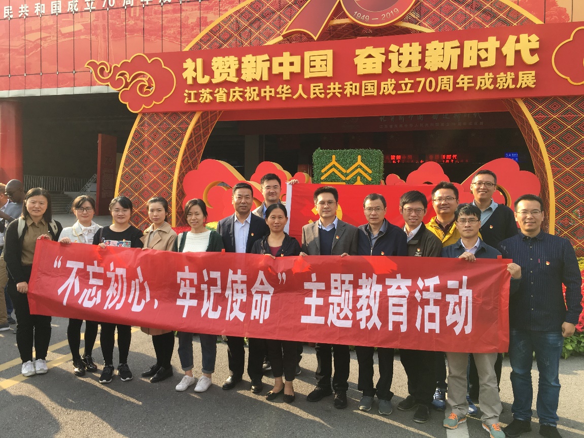 学院党委将主题教育学习搬到展厅,进行现实地教学,开展了一场“不忘初心,牢记使命”为主题的爱国主义教育。大家通过观看历史图片、短片视频、模型场景,对中华人民共和国成立70年来取得的辉煌成就,及江苏省各地经济社会发展历程和成果有了更为直观、全面、深刻的认识。
