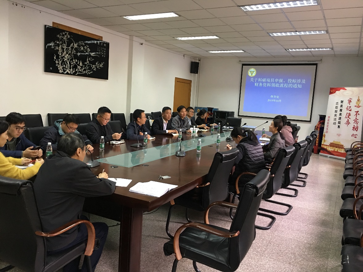 财务处孙副处长就关于科研项目申报、投标涉及财务资料领取流程,科研汇款到账相关事宜,科研项目开具履约担保函的管理规定,财务报销流程等方面进行了交流。