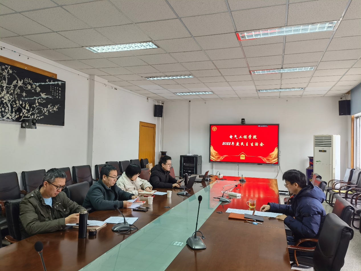 根据学校统一部署与要求,2023年2月22日,电气工程学院党委召开学院领导班子2022年度民主生活会,围绕“全面贯彻习近平新时代中国特色社会主义思想,深刻领悟‘两个确立’的决定性意义,增强‘四个意识’、坚定‘四个自信’、做到‘两个维护’,团结带领党员干部群众以奋发有为的精神贯彻落实党的二十大作出的重大决策部署”主题,紧密结合工作实际,深入检视问题、查摆不足,提出整改措施,明确努力方向。党委书记吴在军主持会议,学院领导班子全体成员参加会议并开展批评和自我批评。